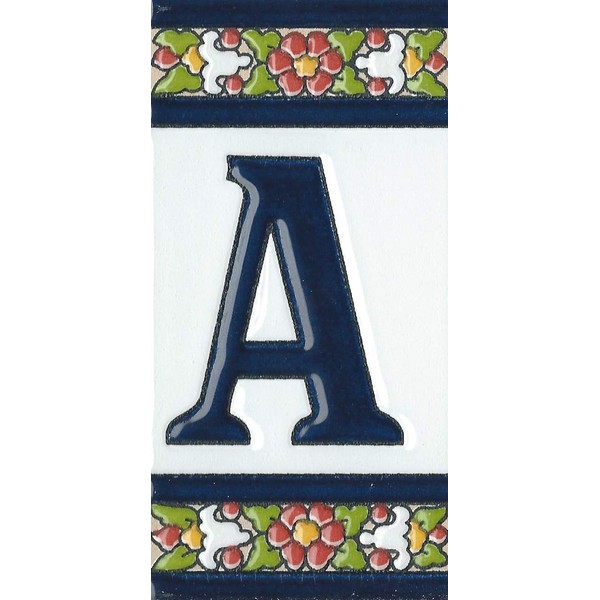Spanish Floral Letter Ceramic Tiles with Frame - Letter A