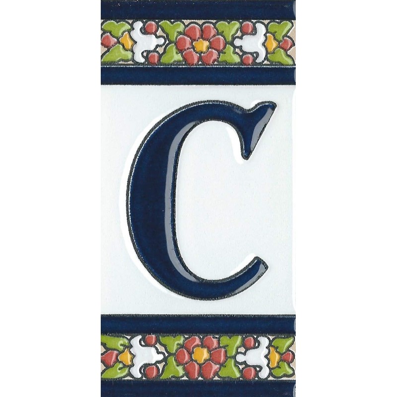 Spanish Floral Letter Ceramic Tiles with Frame - Letter C