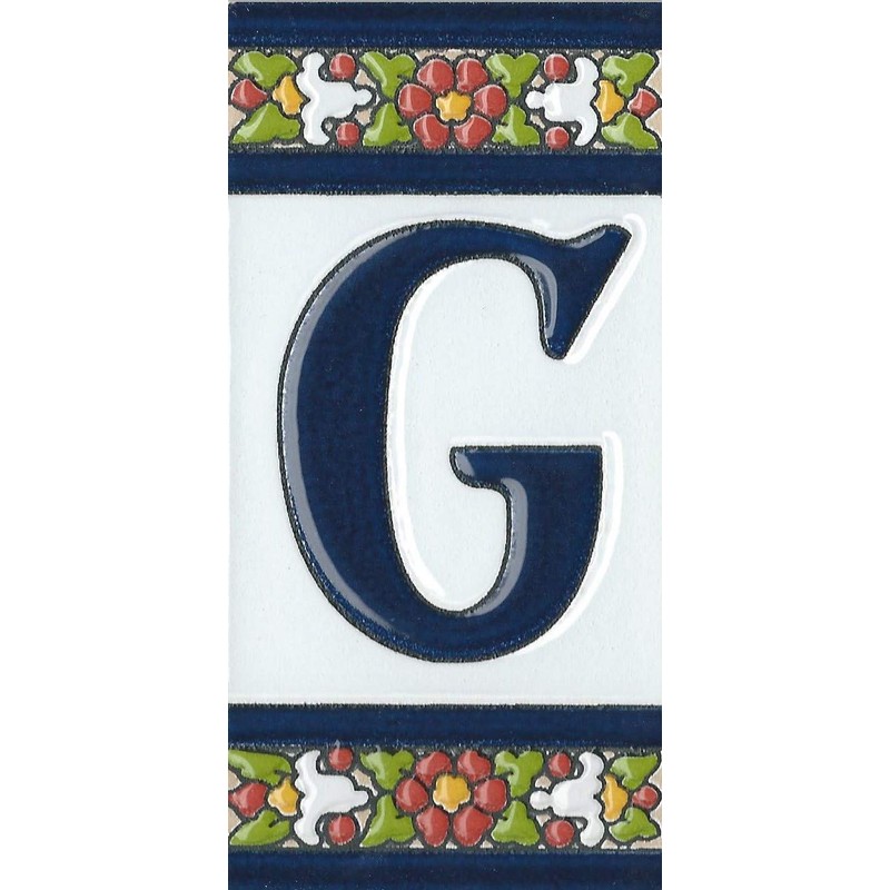Spanish Floral Letter Ceramic Tiles with Frame - Letter G