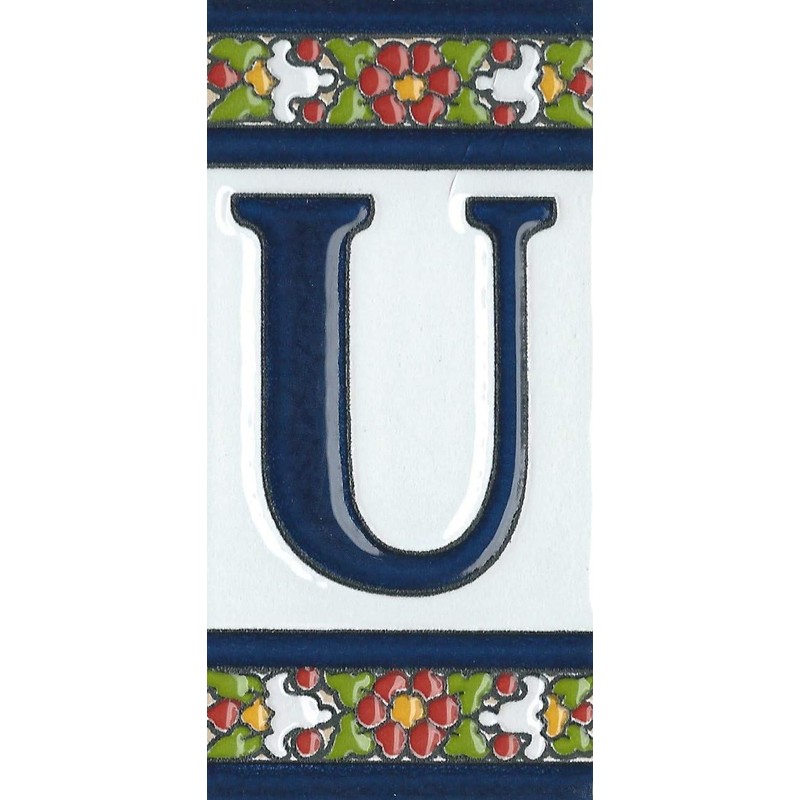 Spanish Floral Letter Frame Ceramic Tile Letter U