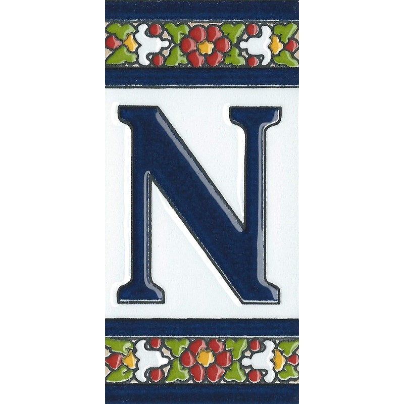 Spanish Flower Letter N Ceramic Tiles with Frame