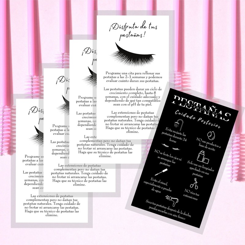 - Lash aftercare instructions written in Spanish, wallet sized to easily fit in your aftercare kit!