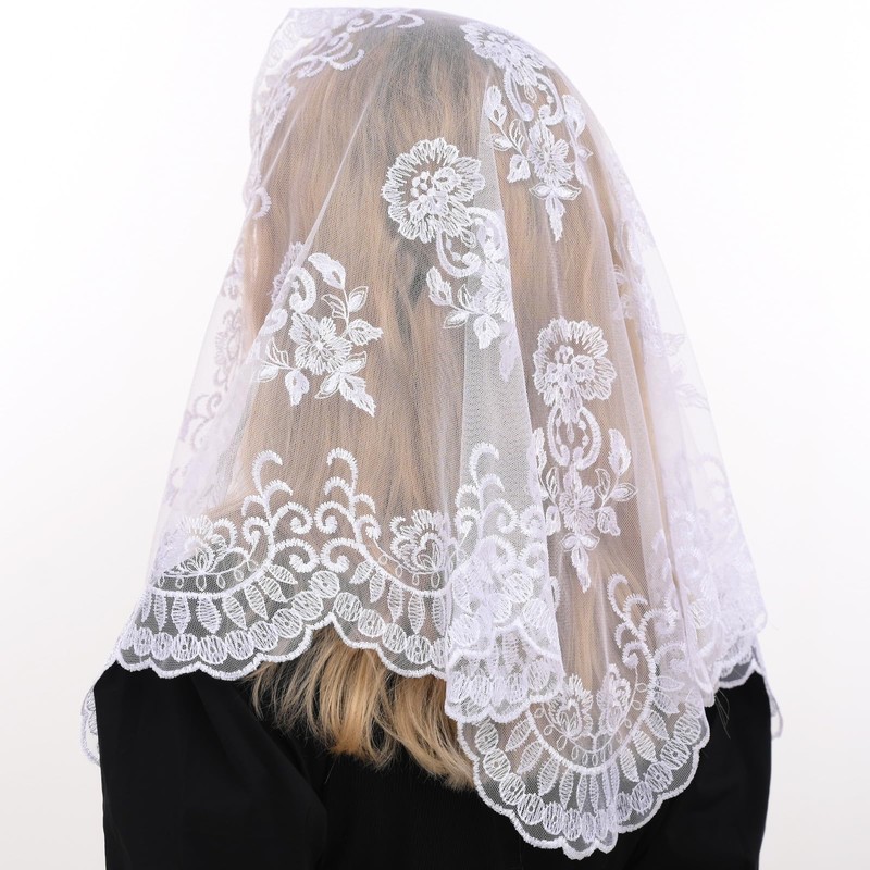 - This beautiful mantilla veil features a scalloped lace trim that is elegant and adds a touch of femininity. It is made of soft and lightweight fabric, making it comfortable to wear for extended periods of time. The veil is designed to be worn during Mass or other religious services and can be easily adjusted to fit most head sizes.