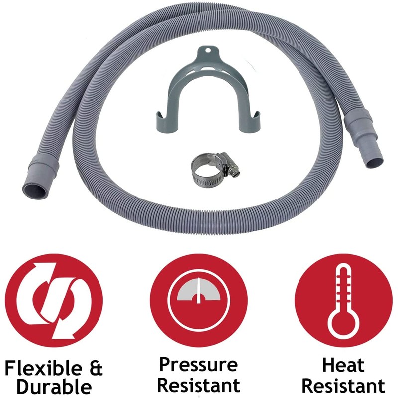 - Kit contains: 1 x 1.5 Metre waste water drain hose -- 1 x Hose bracket -- 1 x Pipe clip