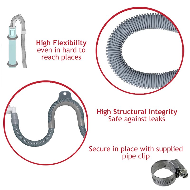 - Drain hose features built-in adaptor for quick and easy connection (use pipe clip to fasten at the joint)