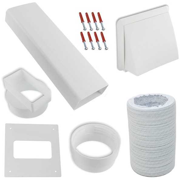 SPARES2GO Exterior Wall Venting Kit & Extension Hose for White Knight Tumble Dryer (White, 4" / 102mm)