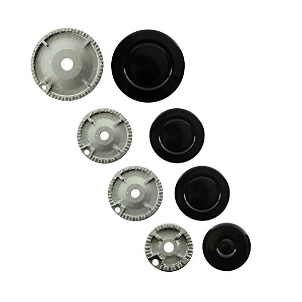 SPARES2GO (Non Universal) Oven Cooker Hob Gas Burner Crown & Flame Cap Kit for CDA (Small, 2 Medium & Large, 55mm - 100mm)