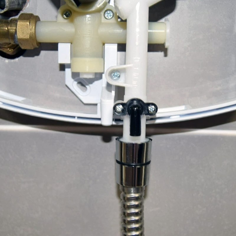 To install, first remove the shower hose and unscrew the drain pipe. When you have removed the screws, twist and pull them to remove and find the PRD attached to the outlet pipe with 2 screws. Unscrew the pipe and dispose of it. Make sure your new PRD the burst disc is firmly attached, then press it in place and screw it onto the outlet pipe. Hose and cover. Set the temperature of your shower to cold before running it for the first time after replacing the PRD so that the heating tank can be refilled to ensure you do not damage the elements.