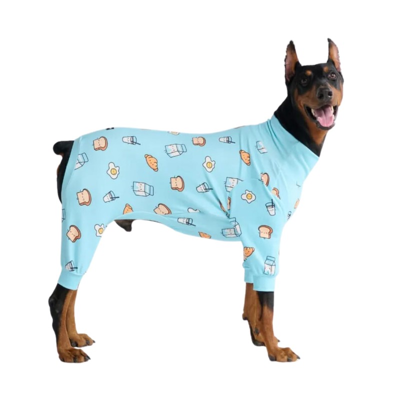 Spark Paws Dog Pajama, Ultra-Soft and 4-Way Stretch, Recovery-Suit PJ Onesie for Small, Medium and Large Breeds - Breakfast Blue - 3XL