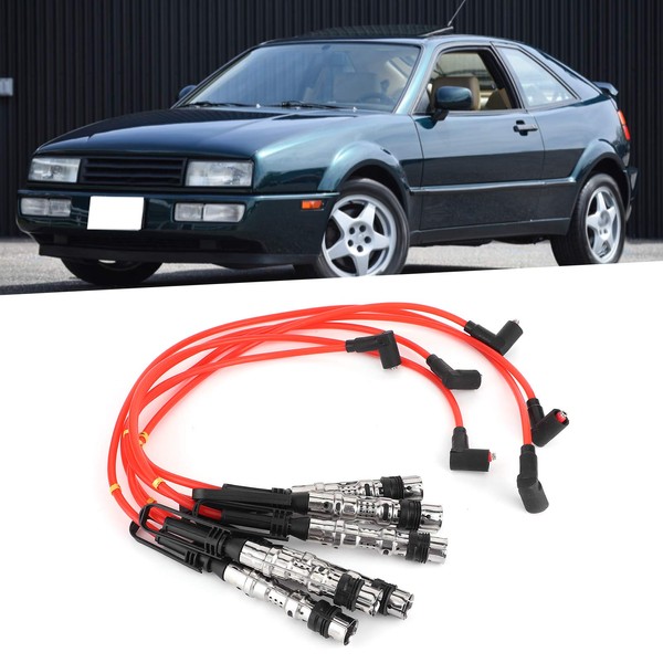 Spark Plug Cable, Pack of 6 Red Ignition Cable Ignition Cable 1J0998031 Suitable for Corrado VR6 2.8 2.9 with Pull Rod