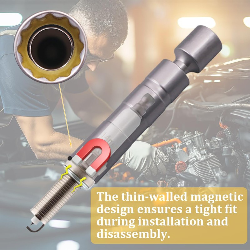 Excellent quality: the candle wrench is made of high-quality chrome vanadium steel. The professionally treated chrome vanadium steel is more wear-resistant than ordinary rubber and has a longer service life. Unlike conventional rubber seals, the internal magnets do not wear out over time, ensuring a long service life.