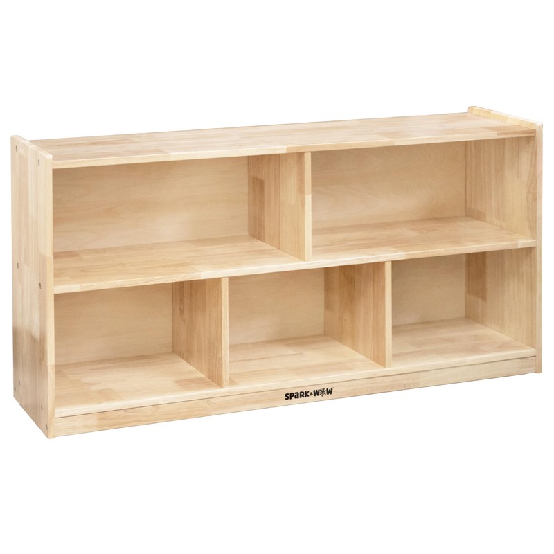 SPARK & WOW 5-Compartment Solid Wood Storage Cabinet | Toy Shelf Organizer for Kids | Shelves for Classroom | Includes Optional Wheels