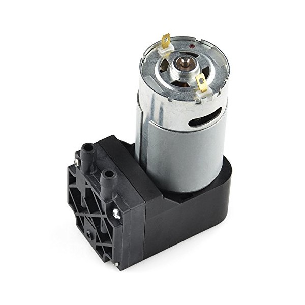 Description: This vacuum pump really sucks! This pump operates at 12V and has enough suction for most small projects. We even used one to make our very own universal gripper using coffee grounds, balloon and some other parts.