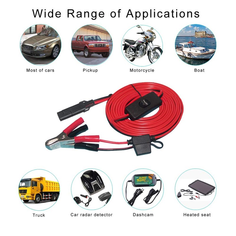 - Crocodile Clips to Sae Battery Connectors Cable, Suitable for most of car,motorcycle, ATV, boat, truck,lawn mower, scooter, bike and other vehicle.