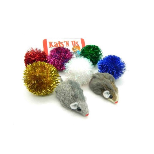 - This Pak contains 6 sparkle balls, & 2 Real Fur Mouse Cat Toy