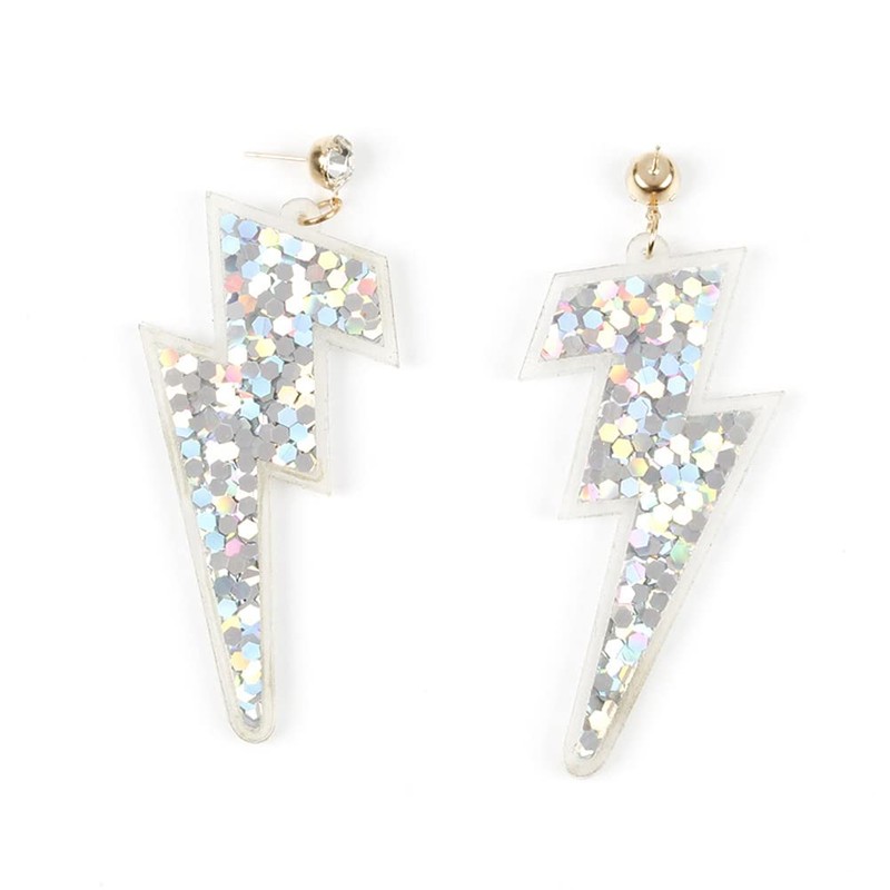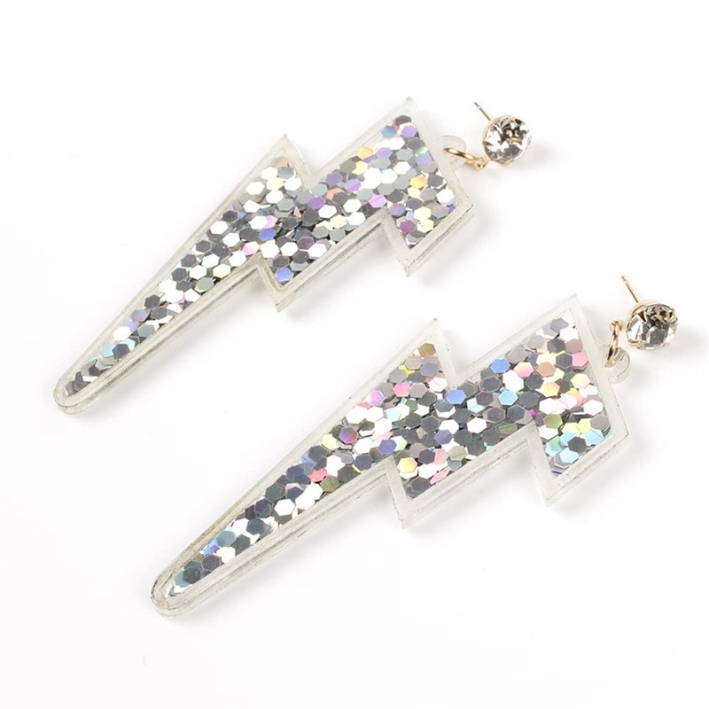 Sparkle Glitter Sequins Lightning Bolt Earrings for Women Acrylic Exaggerated Flash Statement Earrings 80's Party Jewelry, sequin Rhinestone, sequin