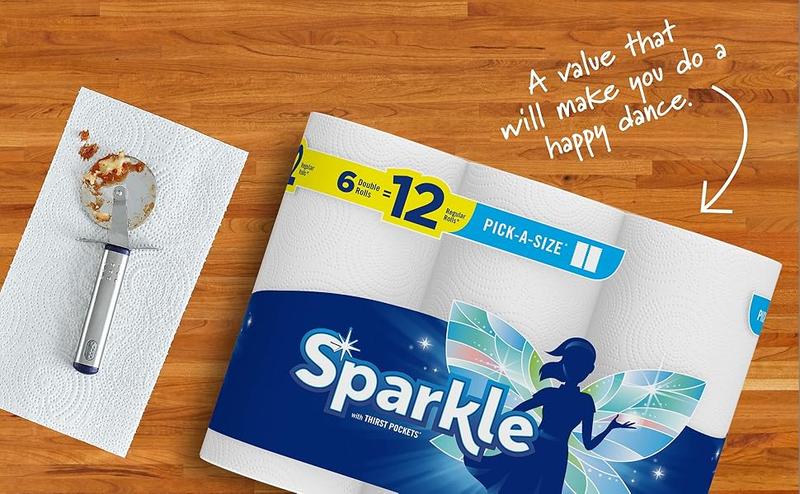 Sparkle® Pick-A-Size® Paper Towels are strong for everyday messes! So go ahead, reach for a full or half sheet to handle life's everyday twists and turns-from unavoidable messes and spills to last-minute art projects and all the routine cleanups in between. With Sparkle® Kitchen Paper Towels on hand, you'll be prepared for whatever comes your way at an affordable price to boot! Sparkle® Pick-A-Size® Paper Towels with Thirst Pockets® are designed with a perforation in each sheet so you can choose between a full size or half size sheet for your everyday tasks. Each Double Roll contains 110 2 ply paper towel sheets. Sparkle® Paper Towels are just right for cleaning up your everyday messes without cleaning out your piggy bank. Whether you need to wipe up a mess in your kitchen, take care of small spills, shine up your windows and mirrors or wipe your hands or face clean, Sparkle® Pick-A-Size® Paper Towels allow you to spend less on your everyday messes.