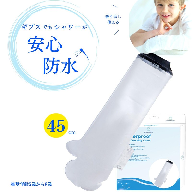 【看護師推奨】 SPARKLE SKY ギプスカバー 子供 腕 45cm 防水カバー ギブスシャワーカバー 繰り返し使える 包帯カバー お風呂カバー (子供の腕用 45cm)
