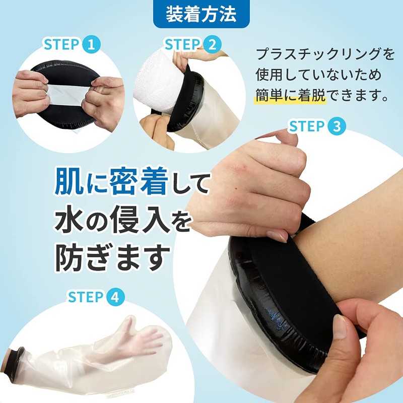 - 【商品について】骨折や怪我の治療中にギプスや包帯を着用したままでも濡らさず安心してシャワーを浴びることがでる防水プロテクターです