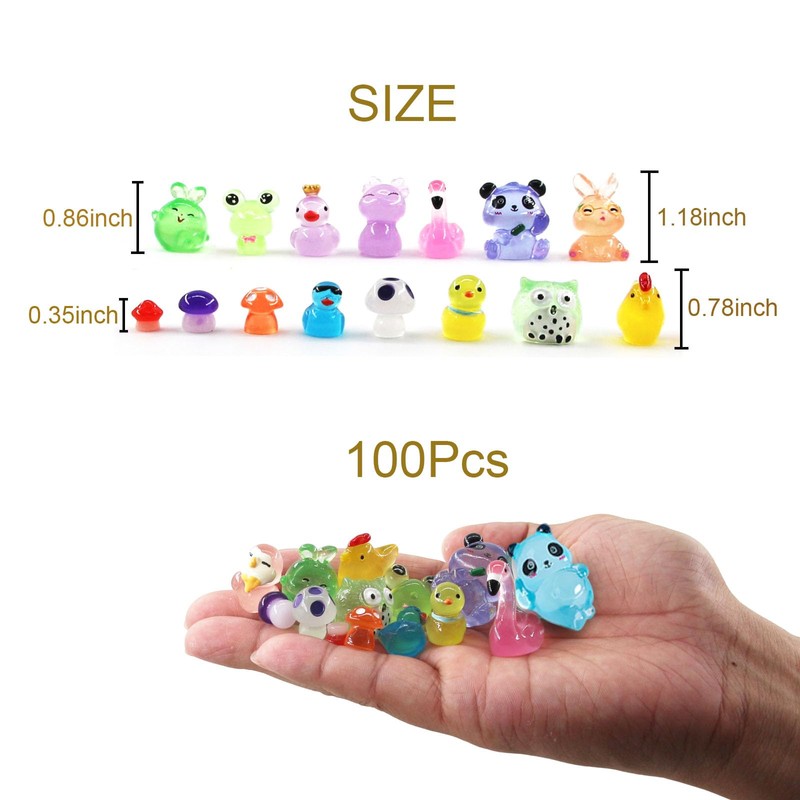 - Enchanting Glow - Illuminate your garden with 100 luminous mini resin animals that emit a gentle glow in the dark, adding a magical ambiance to your fairy garden.