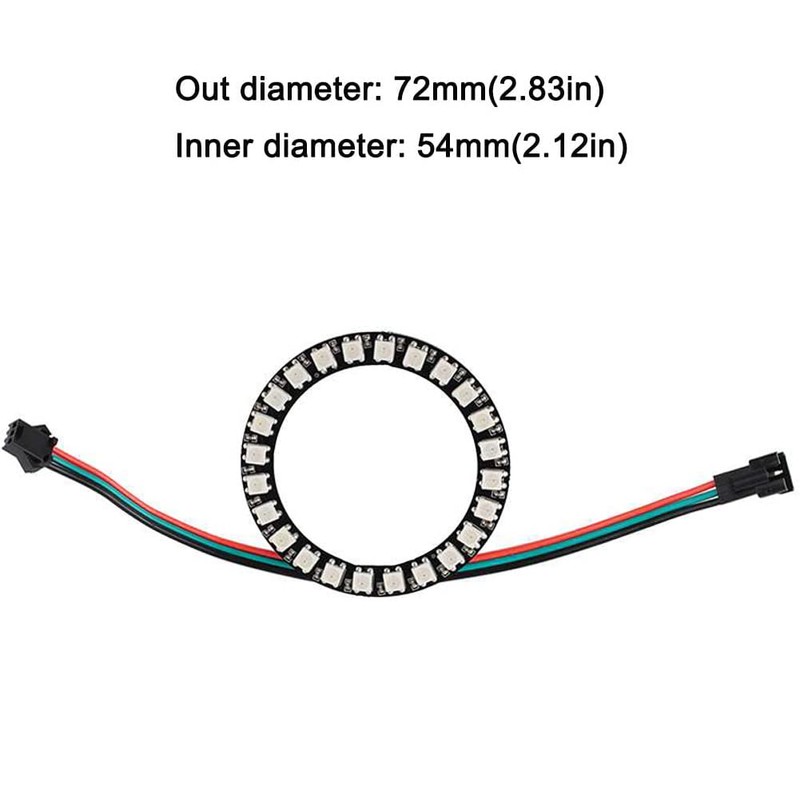 Sparkleiot 24 Bits WS2812 RGB LED Ring with SM2.54-3P Wire, 24 X WS2812 5050 Addressable LED Pixel Full Color with Integrated Drivers DC5V for Arduino Raspberry Pi ESP8266 Nodemcu (Pack of 2pcs)