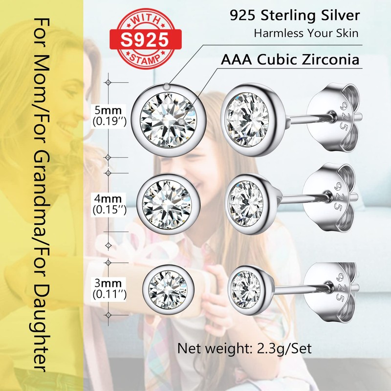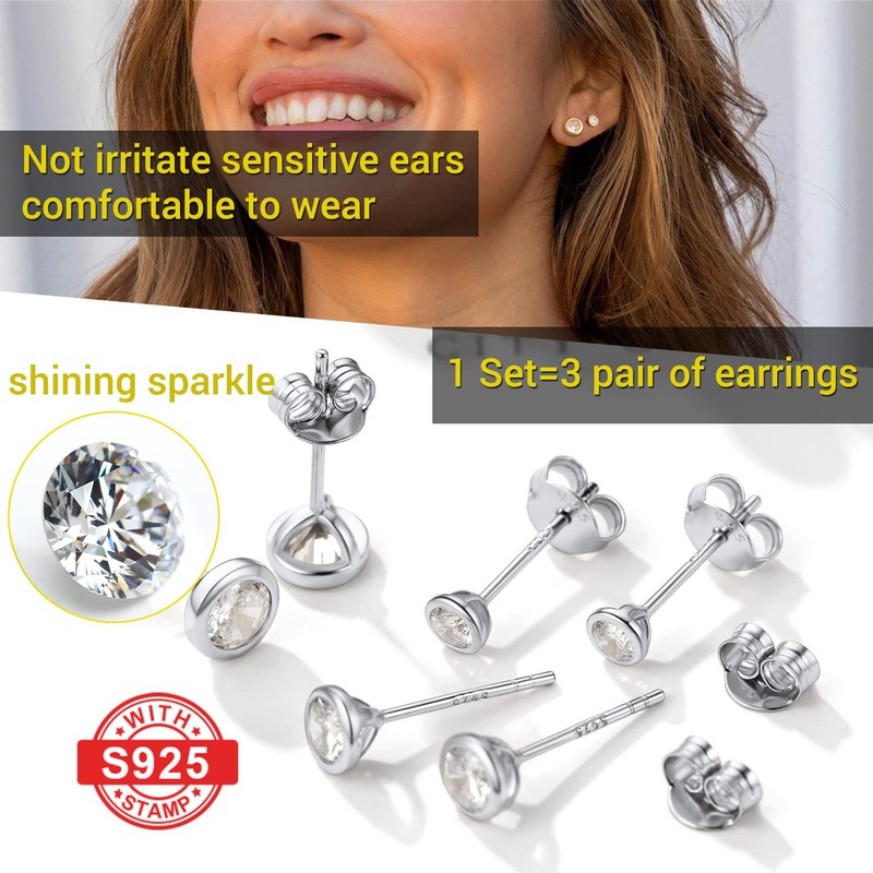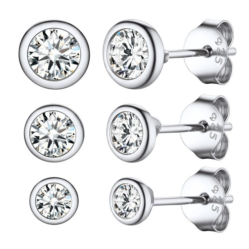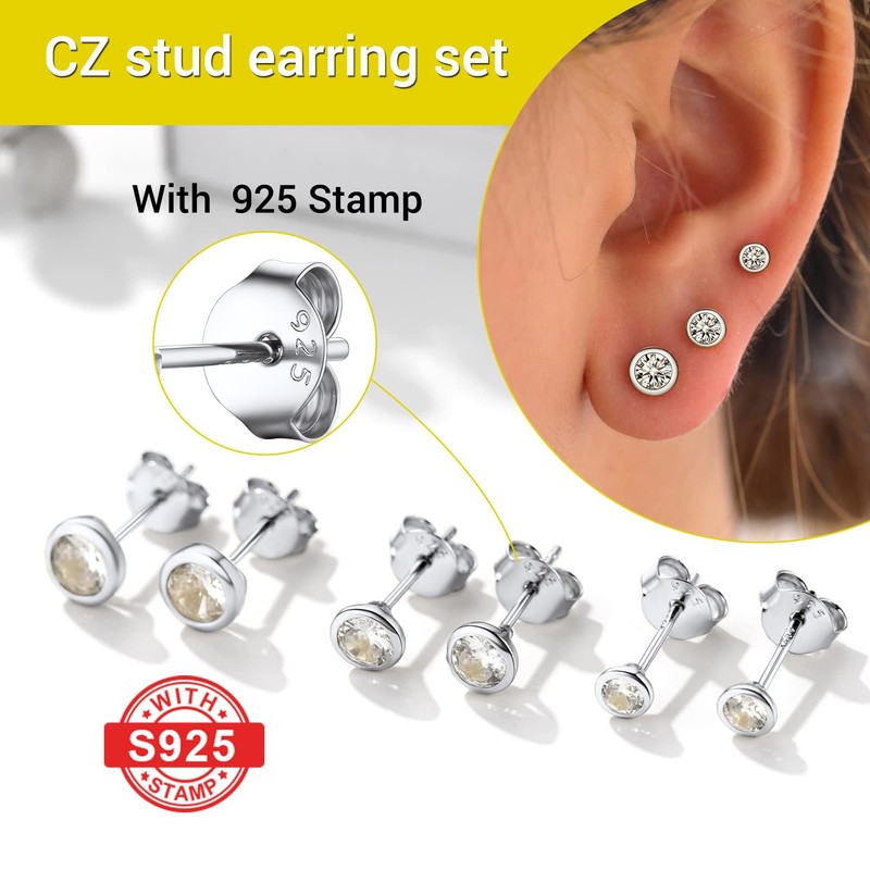 Sparkly Cubic Zirconia Sterling Silver Huggie Earrings 925 Sterling Silver Studs Stud Earrings Pack For Women Multipack