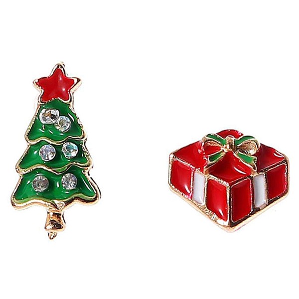 - Sparkly Gold Plated Rhinestone Christmas Tree and Christmas Present Stud Earrings