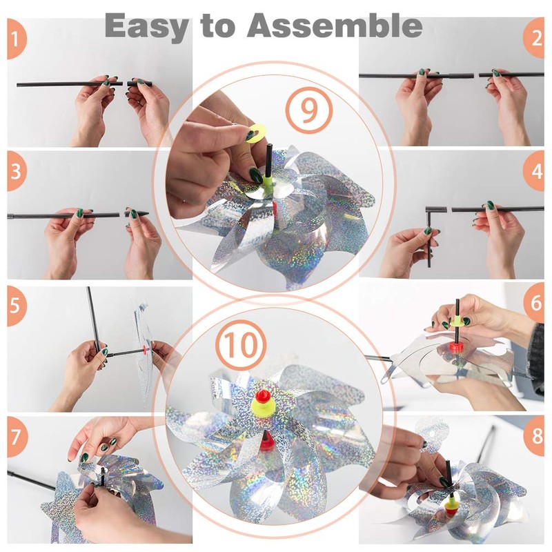 - Diy Windmill:This windmill is not just a DIY windmill toy, it can increase the chance of interaction with children. At the same time, this holographic Mylar windmill rotates in the breeze and reflects light, which can scare away "small animals".