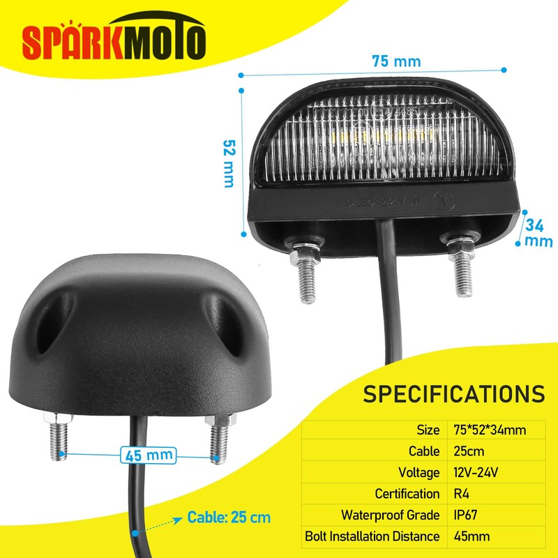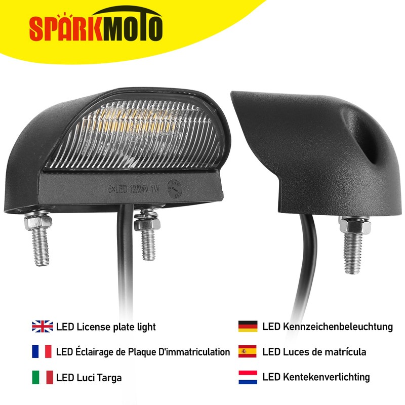 SPARKMOTO 1 x 12 V 24 V universal LED number plate lights for trailers, caravans, trucks.