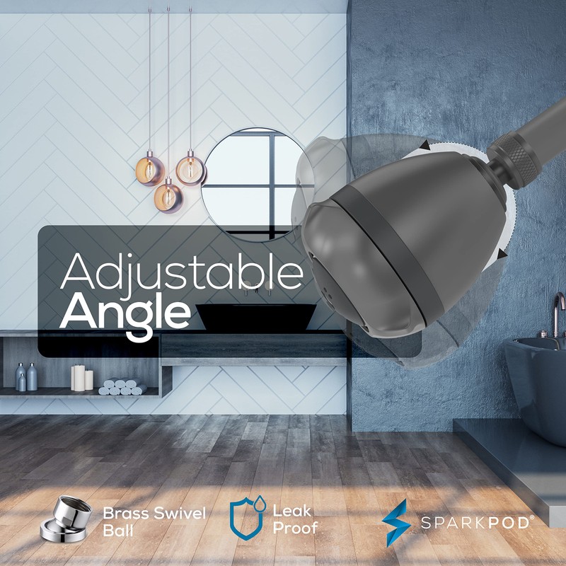 SparkPod 3 Inch Power Pressure Boosting Shower Head - Shower Water Pressure Booster - High Pressure Shower Heads for Low Water Pressure Homes - Rain & Massage 3-Setting Shower Heads (Charcoal Grey)