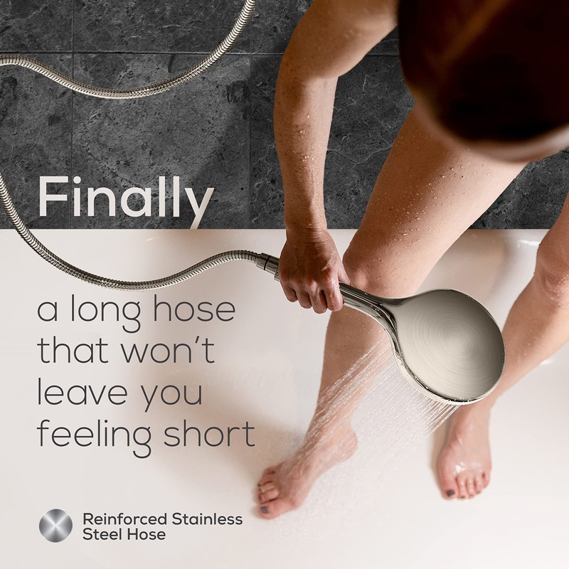 - Immerse in an invigorating shower experience with the brushed nickel shower head featuring a handheld design, delivering high pressure for a full body coverage
