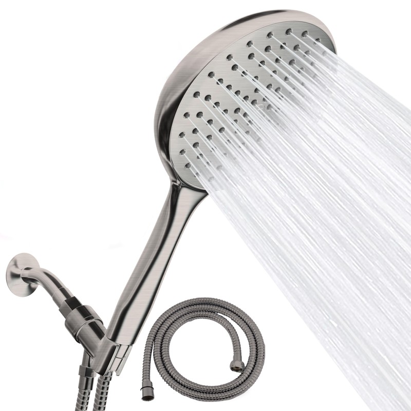 - Equipped with an ABS constructed shower head, 84 touch-clean nozzles, a 6-foot stainless steel hose, and adjustable swivel joint bracket, this handheld shower head ensures a high-flow, wide-angled spray