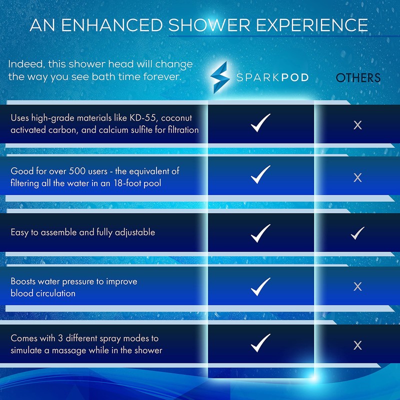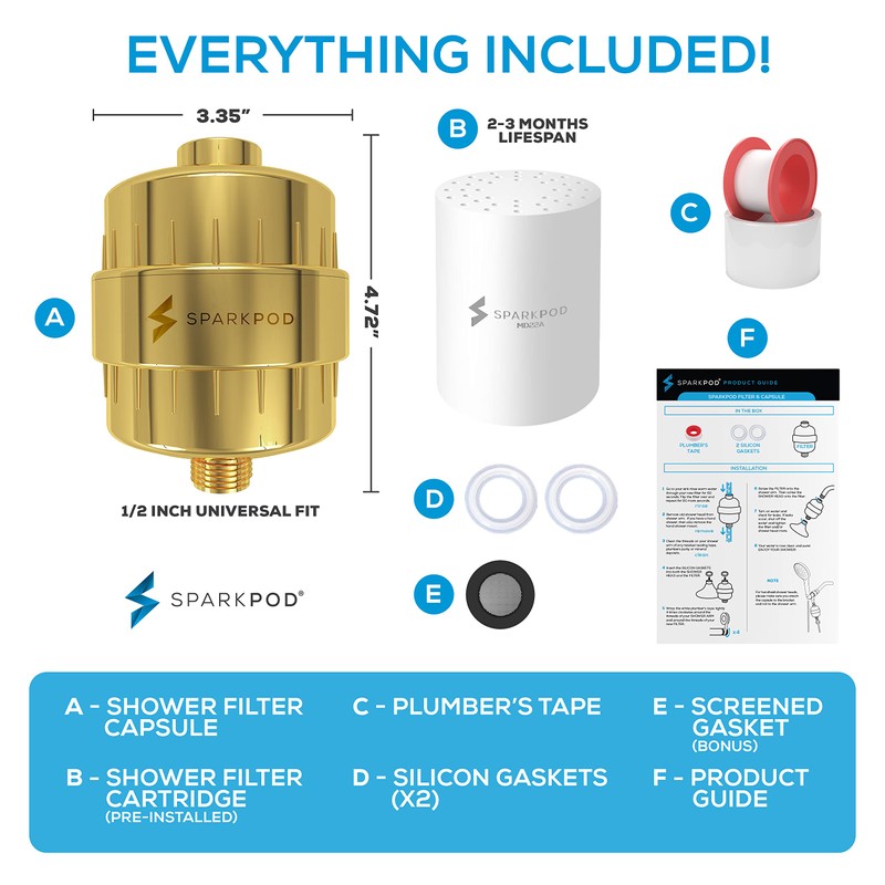 - ¡Un filtro de ducha para 'agua dura' que realmente funciona! Mediante el uso de la filtración multietapa de SparkPod con carbón activado de alta calidad, KDF, sulfito de calcio, vitamina C y bolas minerales/cerámicas, nuestro filtro limpia las partículas dañinas.