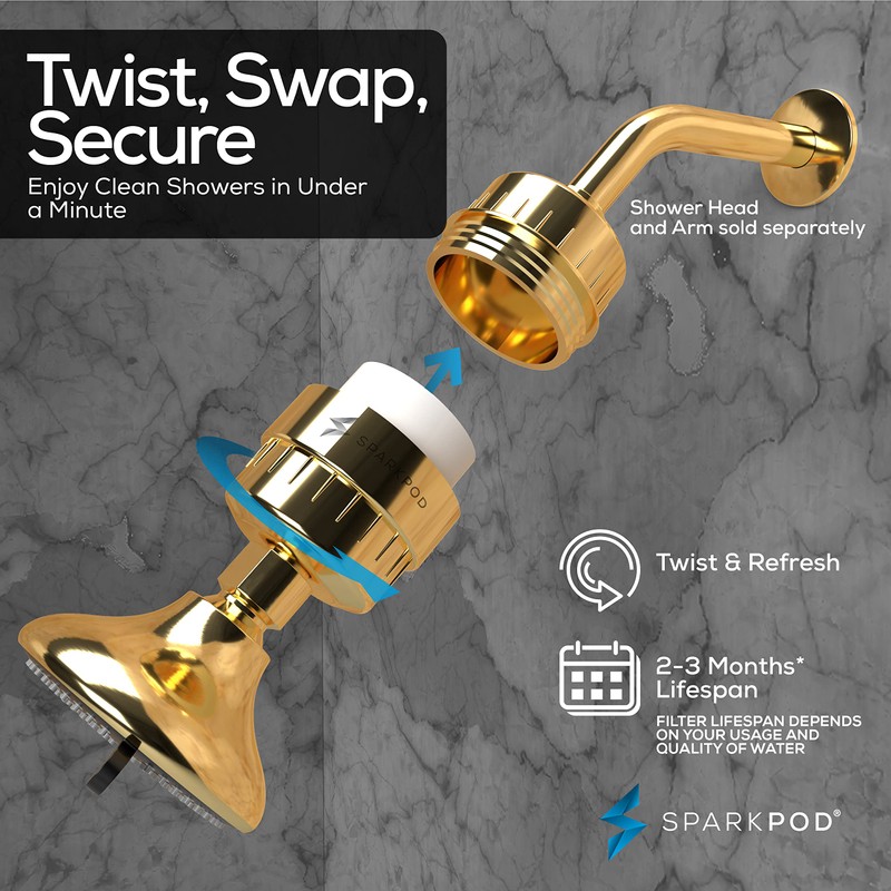 SparkPod- Cápsula de filtro de ducha de alto rendimiento - Adecuada para personas con piel y cuero cabelludo sensibles y secos, filtra el cloro y las impurezas | Instalación de 1 minuto