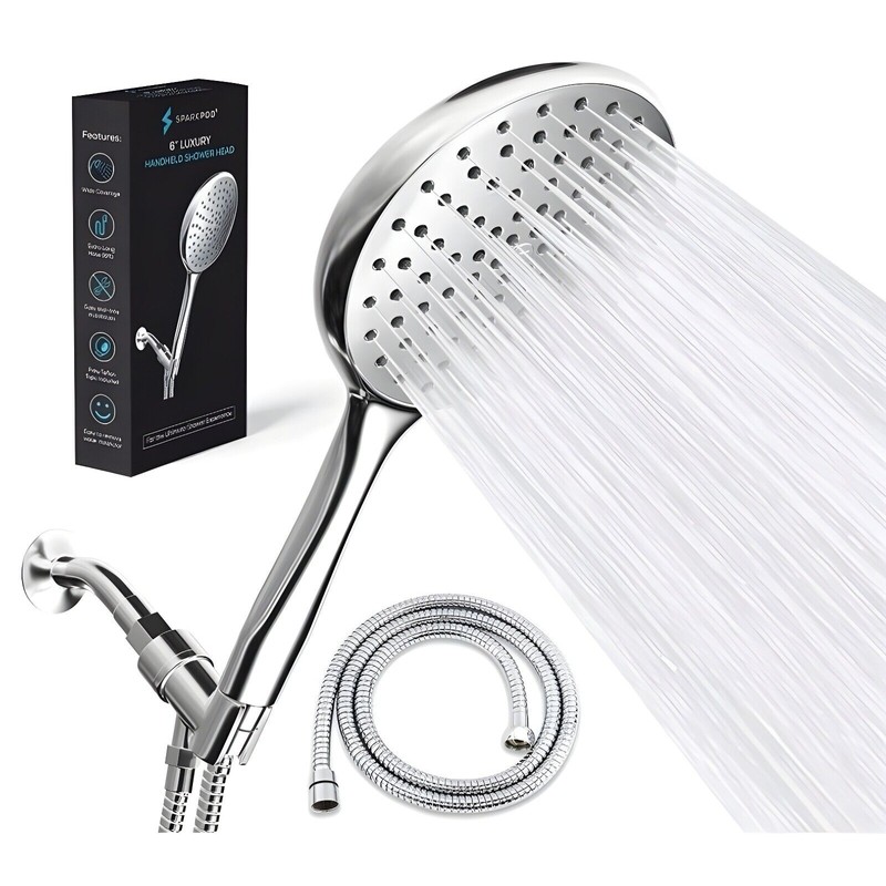 SparkPod High Pressure Handheld 6" Shower Head with 6ft Hose, Adjustable Bracket