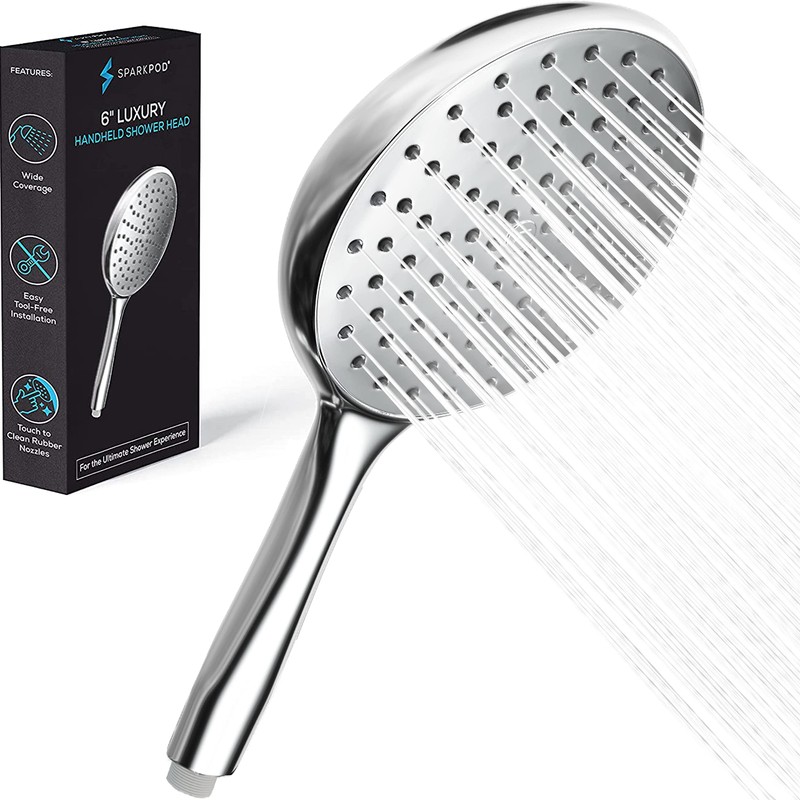 SparkPod High Pressure Handheld Shower Head - Huge 6-Inch Face - Luxury Rain Shower Design - Tool-Free 1-Min Installation - Handheld Only, No Bracket or Hose (Luxury Polished Chrome)