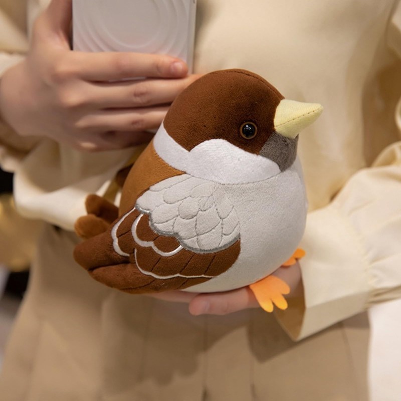 - Sparrow plush toy: This plush toy with the sparrow is deceptively similar to the adorable look of a sparrow. The texture of the wings is exquisite, just like real feathers. The yellowish beak is small and delicate, and the orange feet are playful and cute. The entire plush touch is soft, whether placed on the desk as a decoration, or as a small companion, can bring full warmth and healing.