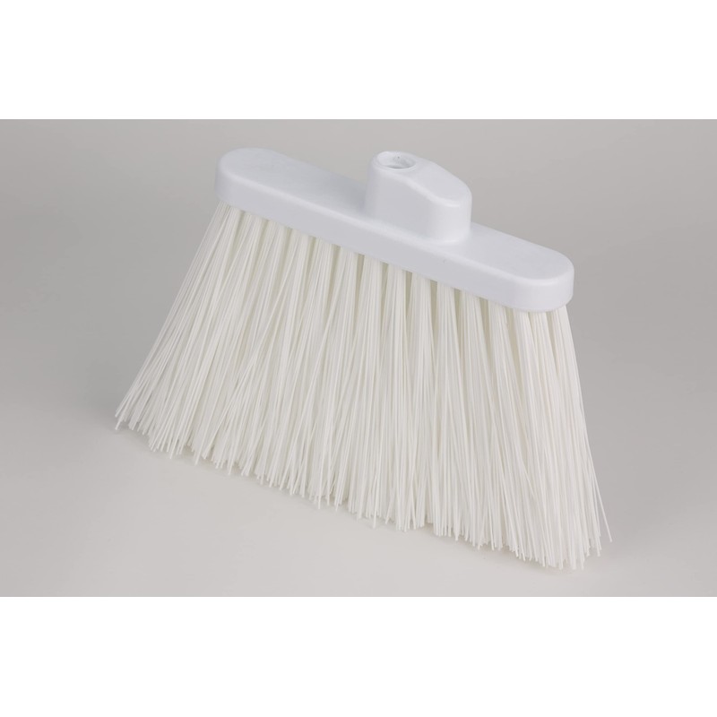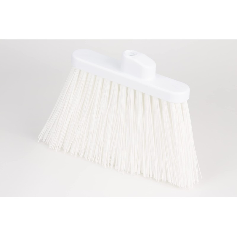 SPARTA 41083EC02 Plastic Color Coded Broom, Unflagged Bristles, Long Broom With Angled Head For Small Debris Cleaning, 56 Inches, White