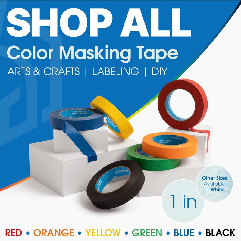 SPARTAN INDUSTRIAL - 1" X 60 yd Blue Tape - 6 Colored Masking Tape Rolls for Home, Office, School Use - No Residue, 5.5 Mil