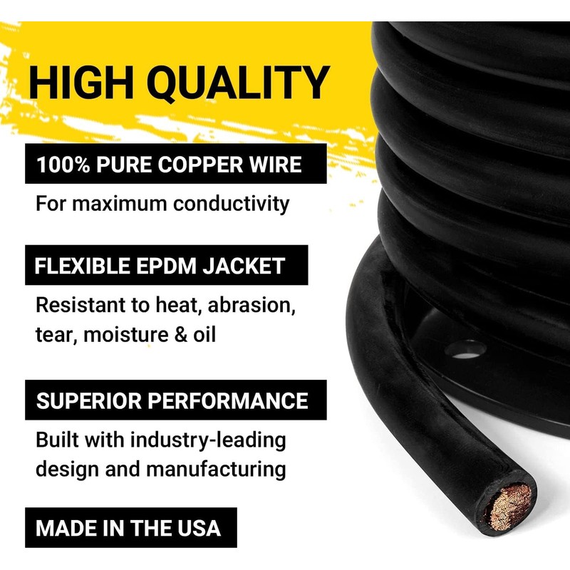 - A Multitude of Uses: Great automotive cable replacements for any type of motorized vehicle, from trucks and cars to motorcycles and motorhomes, RVs, campers, boats, and golf carts; Ideal for DC applications that involve high-voltage batteries where pure copper is recommended