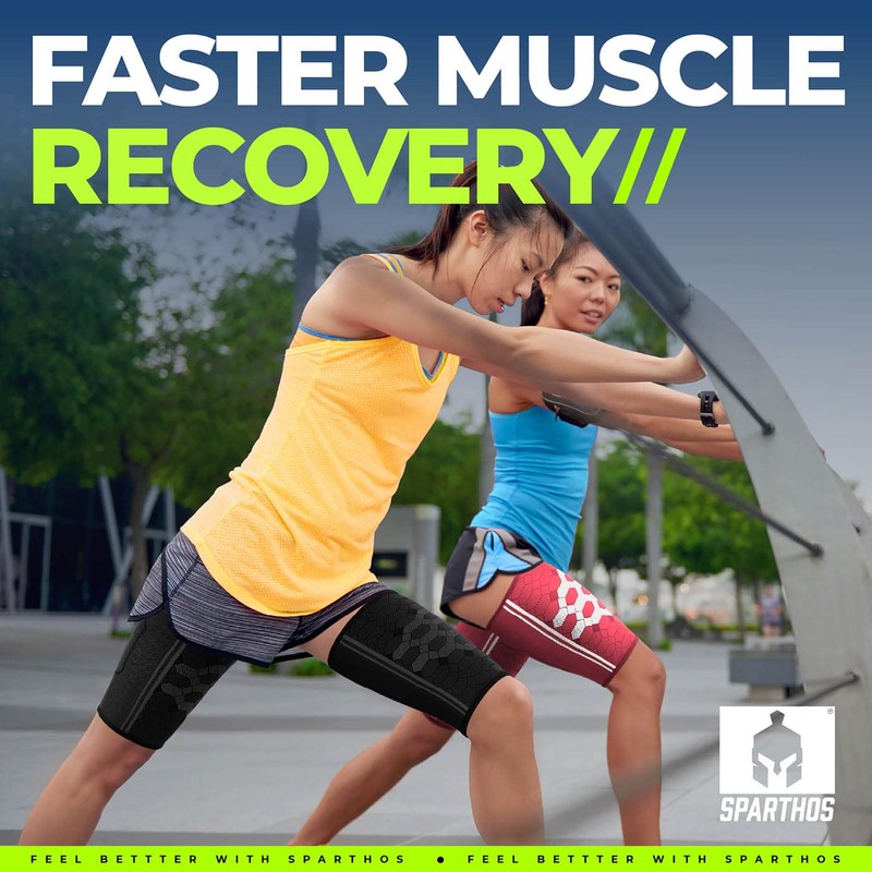 - INCREASE YOUR PERFORMANCE - Created for extra stability and support, Sparthos Thigh Sleeve will compress the thigh stimulating blood flow and delivering more oxygen. These are the key factors of fast recovery. Tear through your workout without slowing down.
