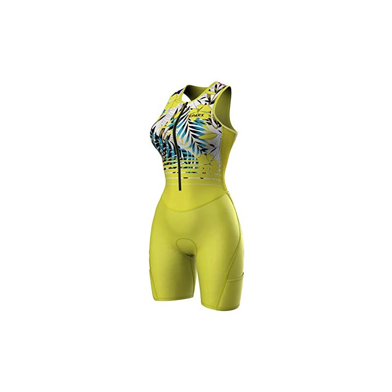 Sparx Sports Women Triathlon Suit Tri Short Racing Cycling Swim Run (S, Green Floral)