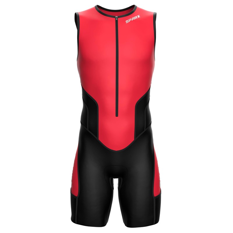 Sparx X Triathlon Suit Men Racing Tri Cycling Skin Suit Bike Swim Run (Shocking Red, XL)