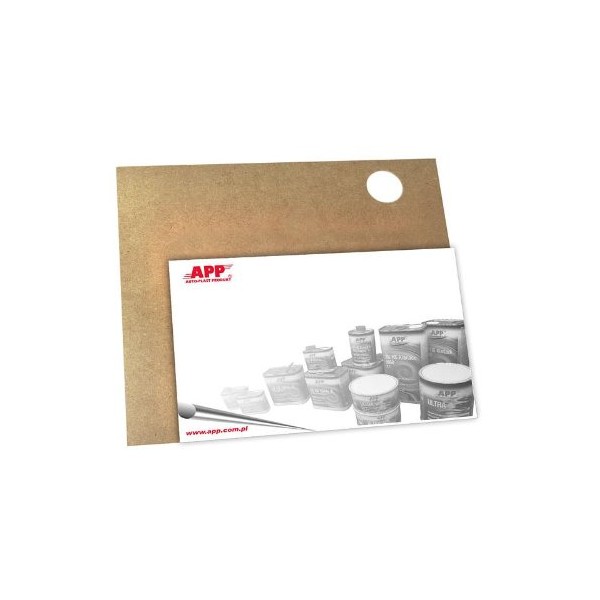 This putty board allows for accurate mixing of fillers with hardener. With 30 disposable cardboard pads. Very stable surface with the dimensions 250 x 17 mm, white background.