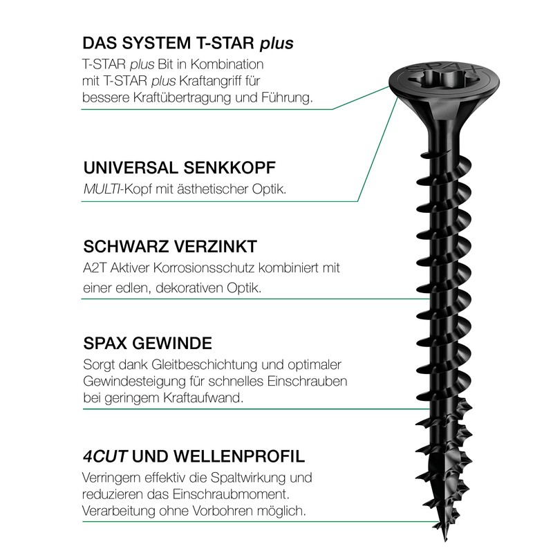 SPAX SPAX Universalschraube, Senkkopf, schwarz, T-STAR plus, Vollgewinde (3,5x30 mm 200 Stck)