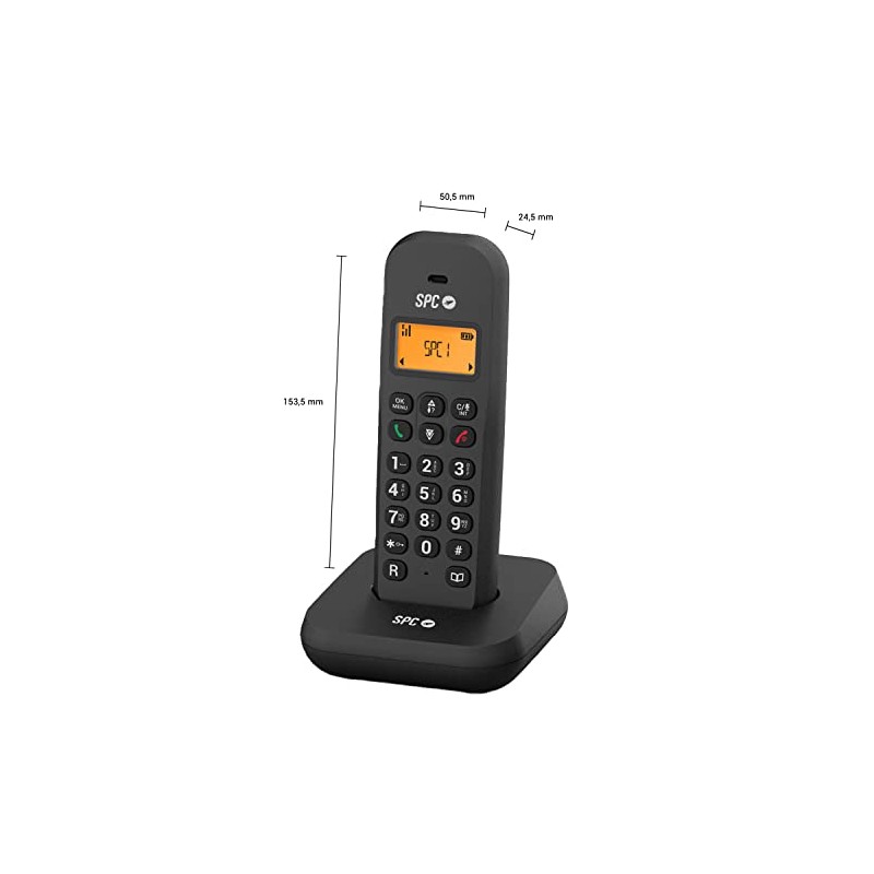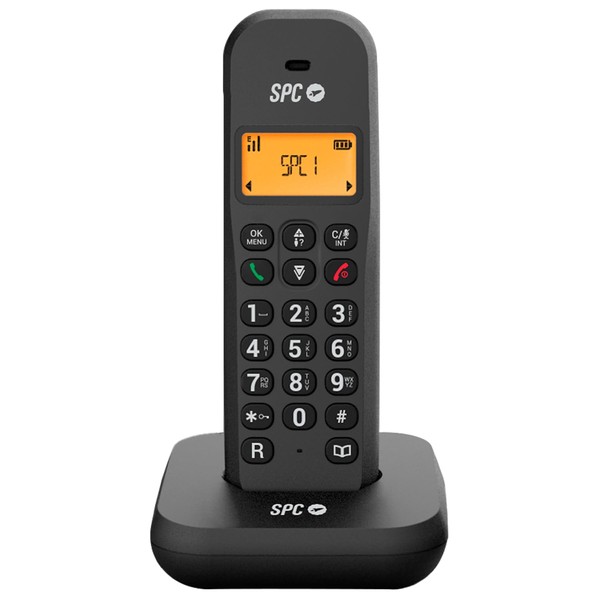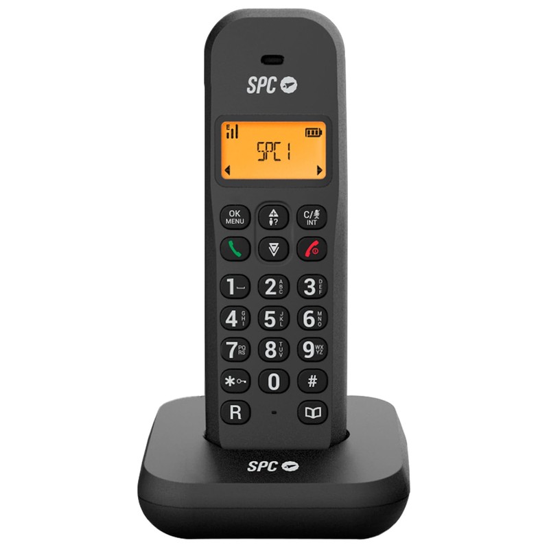 SPC Keops Cordless Landline Telephone, Illuminated Display, 35 x 30 mm, Telephone Book for 50 Contacts, Eco Mode, Gap Compatible, Black