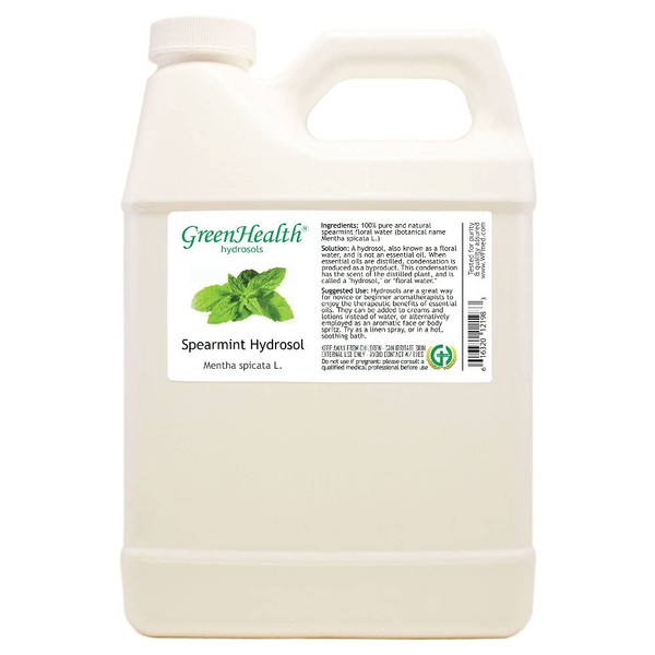 GreenHealth Spearmint Hydrosol (Floral Water) - 32 fl oz Plastic Jug w/Cap - 100% Pure (NOT Oil)
