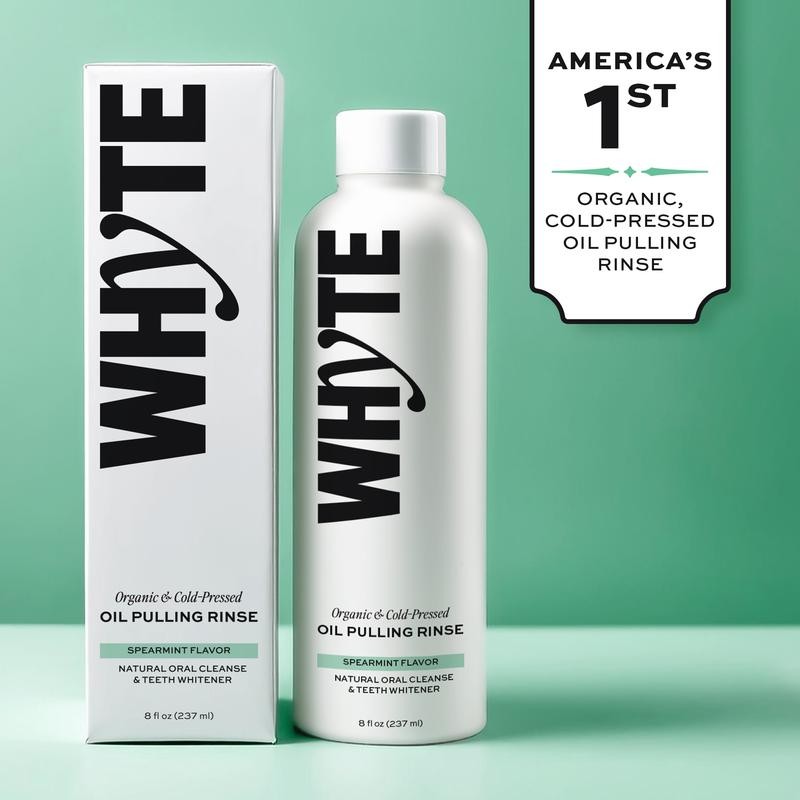 Made with organic, cold-pressed coconut oil and therapeutic essential oils, Whyte Oil Pulling Rinse supports gum health, removes toxins, and freshens breath. Free from additives and artificial flavors, it’s the perfect addition to your daily self-care routine for a cleaner mouth and brighter smile. Our Oil Pulling Rinse supports gum health, removes toxins, and leaves your breath refreshed. BENEFITS ·Cleans Deeply: Helps remove impurities and toxins from the mouth, leaving it feeling exceptionally clean.·Enhances Gum Health: Carefully selected essential oils work to support healthier, stronger gums over time.·Brightens Teeth Naturally: Coconut oil gently lifts surface stains for a noticeable improvement in your smile’s brightness.·Supports Daily Oral Care: Complements your routine by promoting overall oral health without harsh additives.·Gentle Yet Effective: Free from artificial flavors, alcohol, and preservatives, it’s designed for safe, everyday use. HOW TO USE: (1) Shake Well – Before each use, give the bottle a good shake to blend the ingredients.(2) Swish – Take 1-2 tablespoons of oil and swish it around in your mouth for 2-5 minutes.(3) Spit – Do not swallow. Spit the oil into the trash (not the sink) to avoid clogging pipes.(4) Brush – Follow up with brushing for a cleaner, fresher, and brighter smile. For best results, use daily to support natural oral hygiene, healthier gums, fresher breathe, and a radiant smile!