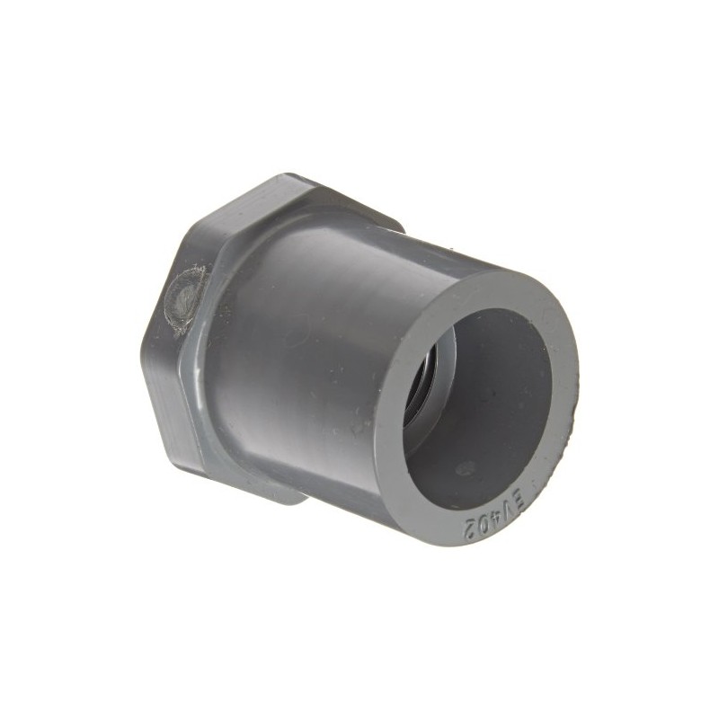 - Spigot on one end and female NPT threads on the other for connecting two pipes with different ends