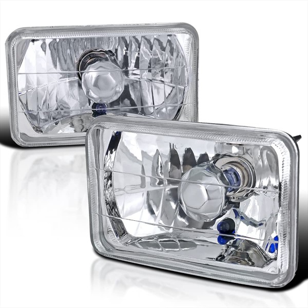 Spec-D Tuning 4X6 Chrome Sealed Beam H4 Headlights Square Lamps Pair Head Light Assembly Left + Right Pair